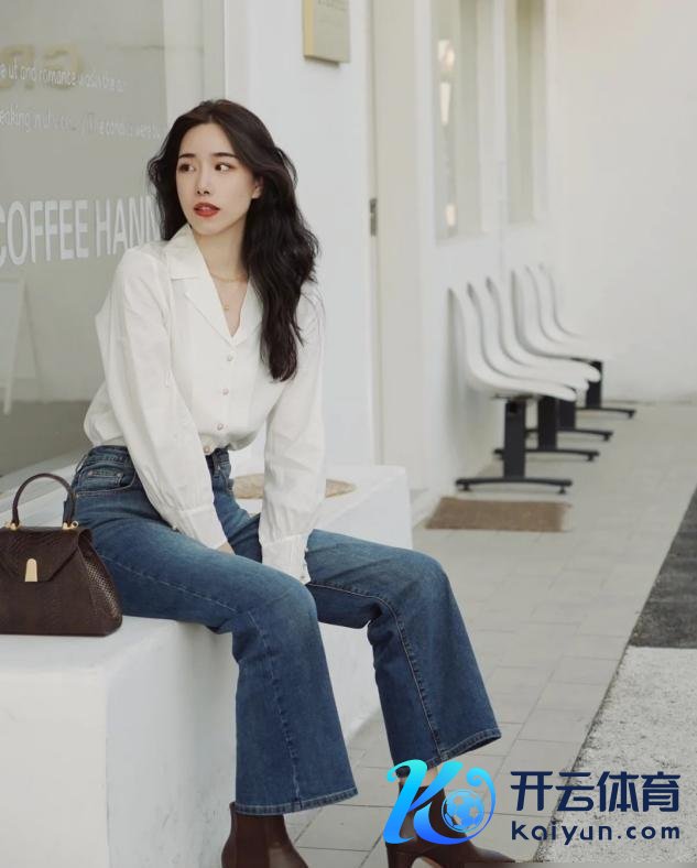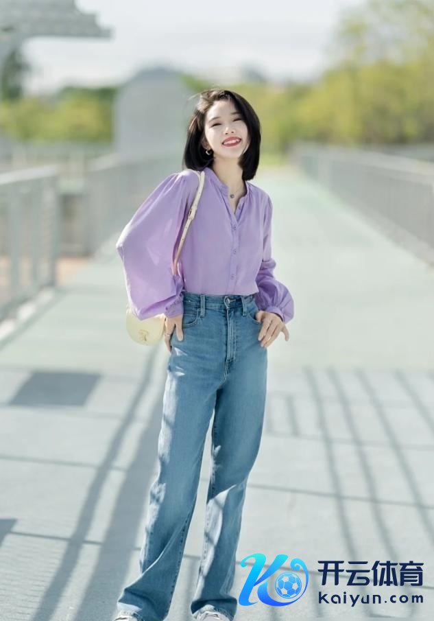 搭配着一条粗浅的牛仔裤,