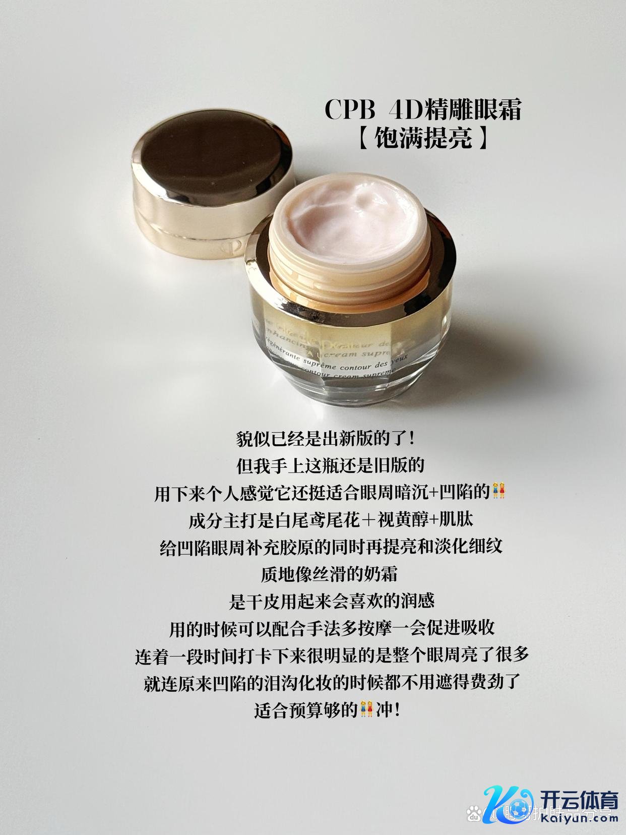 不仅抗老角度广,还能更深层的去改善结构软弱,要不若何敢叫“4D精雕”抗老啊?我幽微的眼袋,每次用完齐有向内收紧的嗅觉,质料滋养简约,上眼一下子就融进皮肤里。