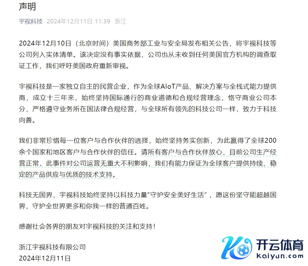 宇视科技:公司被列入“实体清单”莫得事实依据 现在坐褥筹谋普通宇视科技:公司被列入“实体清单”莫得事实依据 现在坐褥筹谋普通