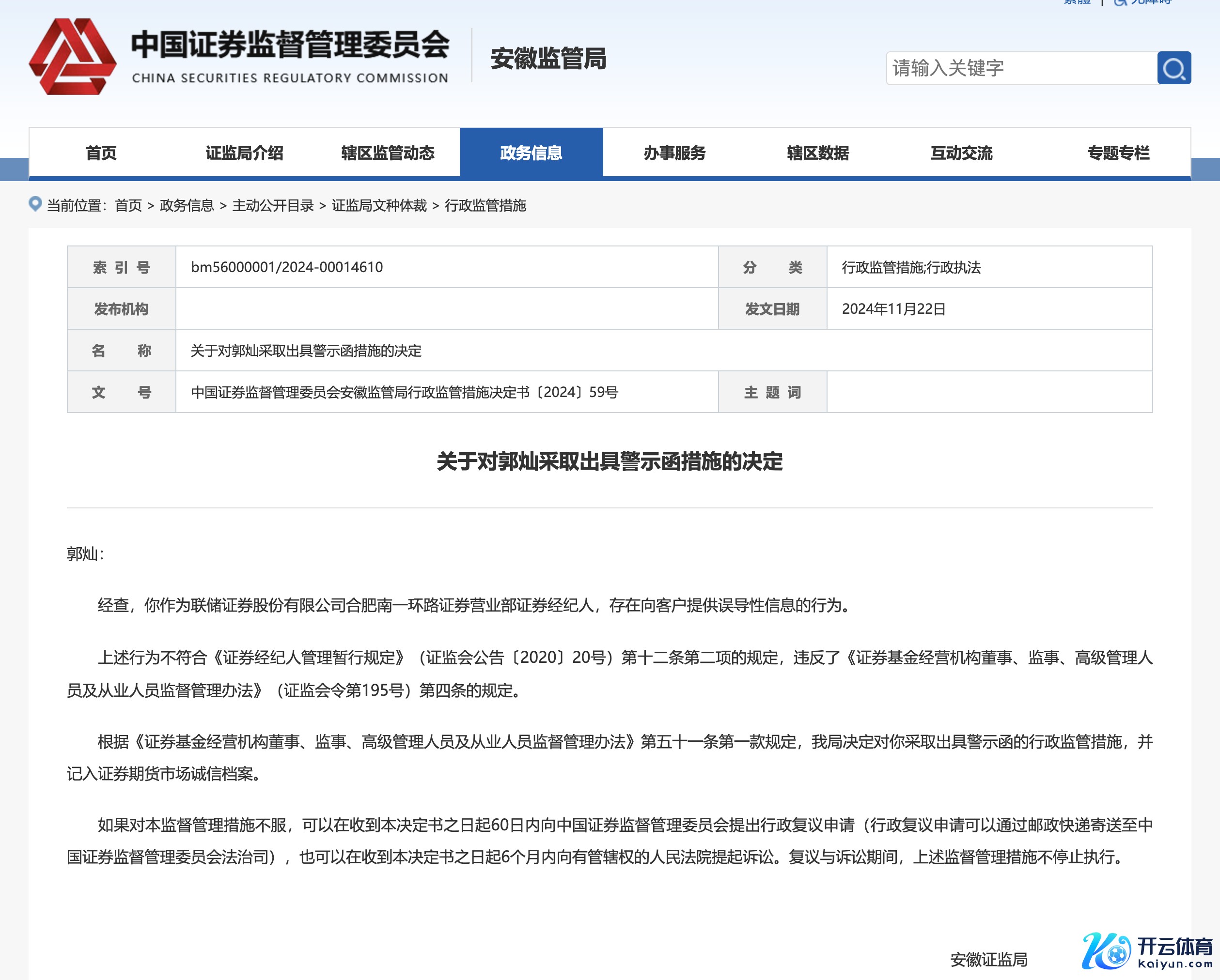 联储证券一商业部职工被出具警示函:向客户提供误导性信息kaiyun中国官方网站联储证券一商业部职工被出具警示函:向客户提供误导性信息