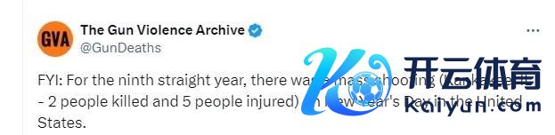 好意思国“枪支暴力档案”在其官方外交媒体表示,好意思国仍是邻接第九年在新年今日发生大规模枪击事件。