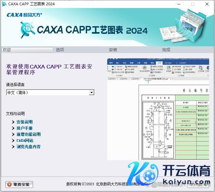 工艺图表 2024 默许装置旅途为 C:\Program Files\CAXA\CAXA CAPP\2024,点击【调动】按钮不错更点击【出手装置】,插足装置界面。