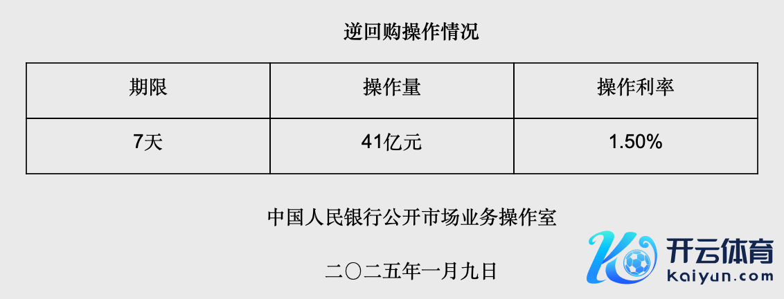 【大河财立方音尘】为保捏银行体系流动性充裕kaiyun官方网站,2025年1月9日,中国东谈主民银行以固定利率、数目招标方式开展了41亿元逆回购操作,利率1.5%kaiyun官方网站,与此前捏平。因本日有248亿元逆回购到期,当日完贞洁回笼207亿元。具体情况如下: