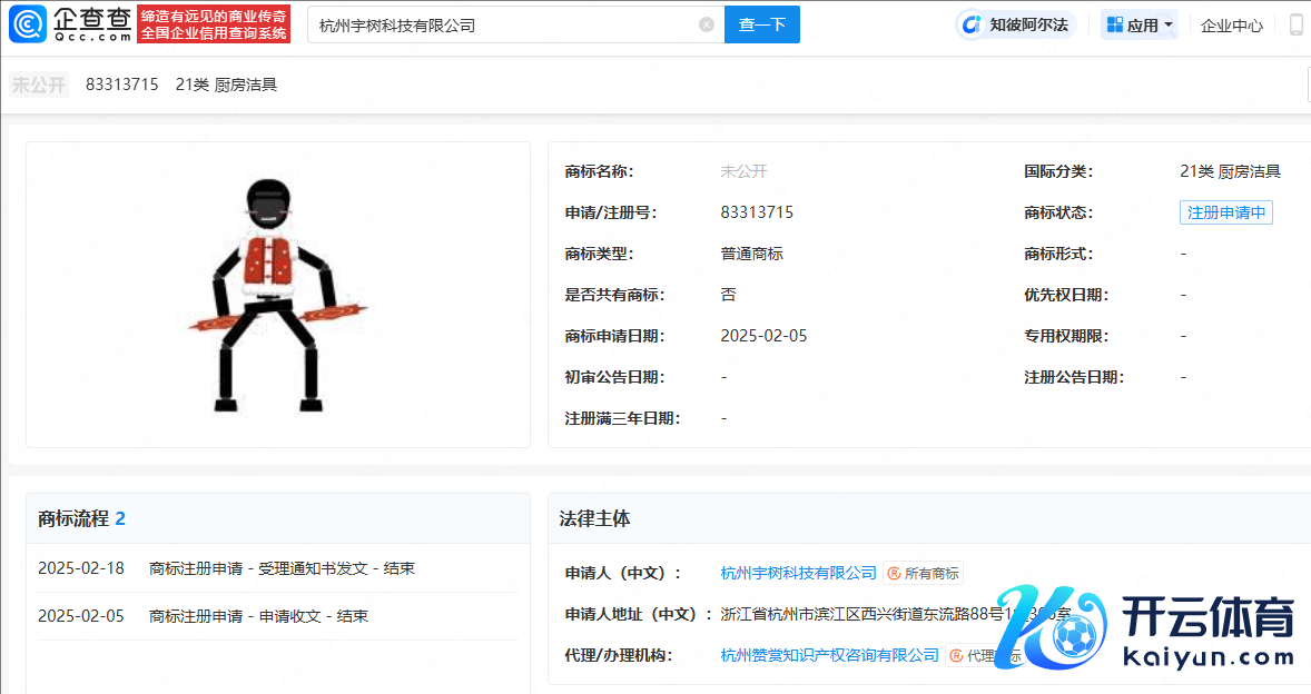 本年春节,宇树Unitree东谈主形机器东谈主因登上春晚舞台扭秧歌爆火。企查查APP表露,近日,杭州宇树科技有限公司央求注册一枚“春晚机器东谈主”形状图形商标kaiyun中国官方网站,国外分类为厨房洁具,现时商标现象为注册央求中。