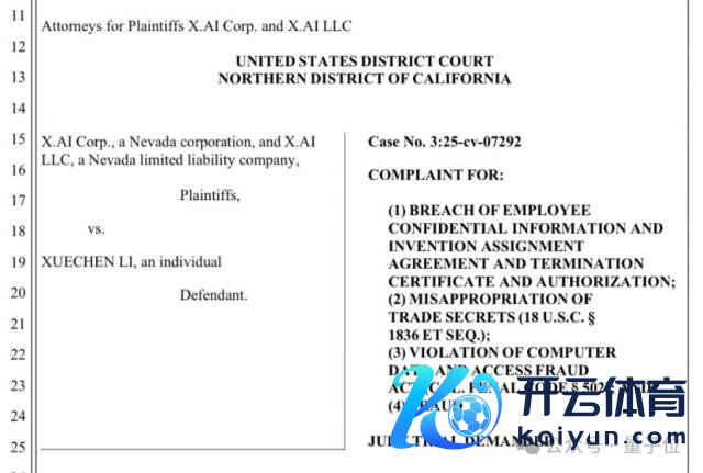 这名去职华东谈主职工是 Xuechen Li,xAI 向加州北区联邦地设施院递交的告状书自大,xAI 一共对他进行了四项指控。