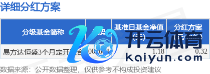 本站音讯kaiyun,9月24日发布《易方达恒盛3个月按期通达夹杂型发起式证券投资基金分成公告》。本次分成为2025年度的第2次分成。公告流露,本次分成的收益分拨基准日为9月9日,真贵分成决议如下: